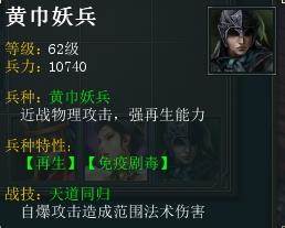 2)3号位 8号位 也是黄巾兵种 同样不怕毒 再生,然而他们2个是流氓2人组 8号位技能十字中毒 3号位技能对异常状态 致命攻击,所以需要再次请出我们华佗MM,(另外 备注下这2个流氓暴击非常非常的高,我的盾免爆都20%了 还经常被暴击)