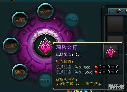 1.进入护符系统后,玩家可以通过“地宫探宝”中获取的宝石或护符进行镶嵌