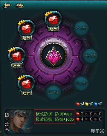 6.不同的护符拥有不同的宝石组合效果,玩家只要满足护符中要求的宝石组合要求后,将会获得额外的加成属性。