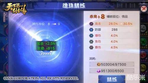 在镶嵌好魂珠后,可以使用魂珠精华进行精炼,不但可以提升魂珠的主属性,而且每升三级还会随机强化或出现一条附加属性,这就是看脸的时候了,人品爆发的话可能正好强化到需要的属性,或者爆出稀有附加属性,那么就是一颗可遇不可求的极品魂珠啦。分解无用的魂珠,或者刷每日的日常演武精华副本都可以获得魂珠精华。