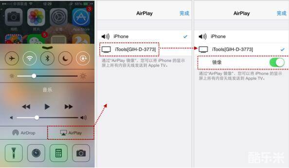 启动苹果录屏大师后,需在手机上开启AirPlay。手机屏幕底部向上滑动,选择AirPlay,进入AirPlay页。默认勾选“iPhone”,勾选iTools后,出现“镜像”选项,开启镜像后,即实现手机与电脑联动。
