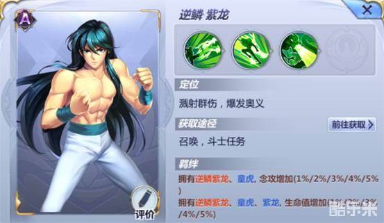 天龙座的紫龙青铜五小强之一,号称爆衣大魔王,只有脱掉圣衣的时候对手才会发现紫龙有多么强大。