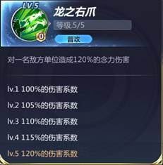 神龙奥义(天秤座-童虎):念攻增加1%、2%、3%、4%、5%。