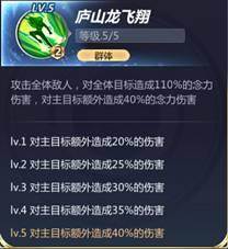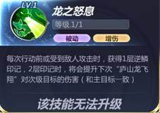 每次行动前或受到敌人攻击时,获得1层逆鳞印记,2层印记时,将会提升下次庐山龙飞翔对次级目标的伤害(和主目标一致)