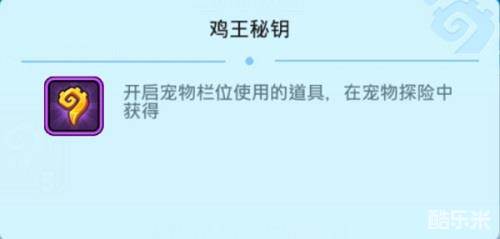 鸡王秘钥用来解锁探险队宠物栏的必备道具,能够大大提高探险队的战斗力
