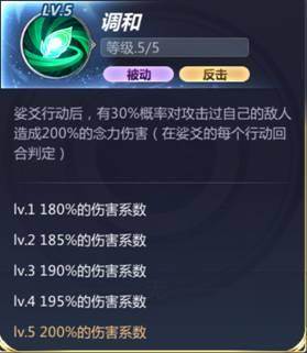 娑爻行动后,有30%概率对攻击过自己的敌人造成180%(185%/190%/195%/200%)的念力伤害。