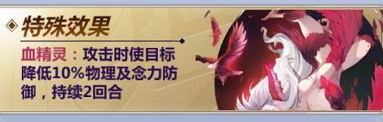 特殊:血精灵(攻击时,使目标降低10%物理及念力防御,持续2回合)