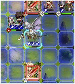 我方部队整体向左缩进,安娜给雪莉加上再生,雪莉向右突进攻击敌剑士