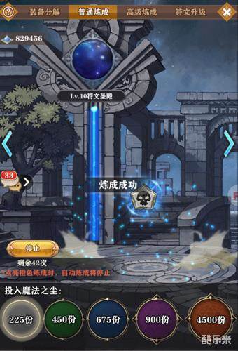 而玩家积累了一定的魔法精华后即可进行高级炼成,在高级炼成中玩家可以有更多大概率获得橙色的稀有强力符文!不过魔法精华可是来之不易,只能通过分解史诗与传奇装备才能获取哦~所以少年们,做好准备去挑战掉落丰厚的皇家冒险吧!
