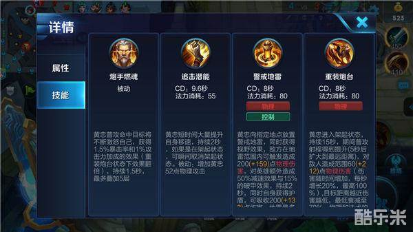 3、被动提供大量的物理攻击加成,显著提升黄忠输出,因此推荐主加该技能。