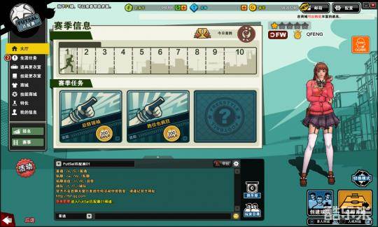房间内可以通过鼠标右键点击其他队友,查看信息和添加好友等操作。也可以再右侧查看房间信息和赛季任务信息。在下方与队友聊天,商量战术等。