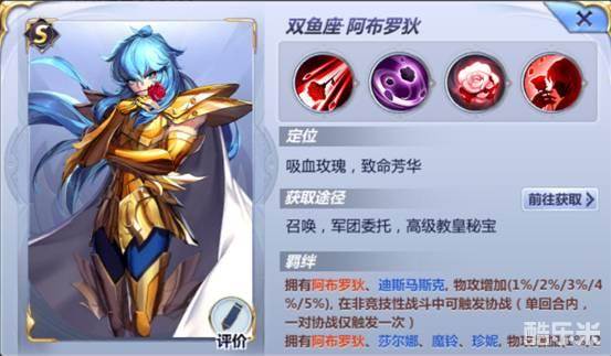 在《圣斗士星矢(腾讯)》手游中,双鱼座阿布罗狄被圣迷们戏称阿布,他的技能都是为被动服务,属于非常强力的翻盘卡牌。
