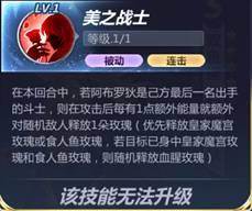 在本回合中,若阿布罗狄是己方最后一名出手的斗士,则在攻击后每有一点额外能量就额外对随机敌人释放一朵玫瑰(优先释放皇家魔宫玫瑰或食人鱼玫瑰,若目标已身中皇家魔宫玫瑰和食人鱼玫瑰,则随机释放血腥玫瑰)