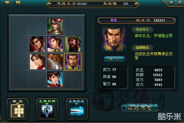 1号位置关二哥是另外一个输出,给他次攻击符和次攻击法宝吧,防御一般般就可以了,有了黄忠的保护他死不掉的。