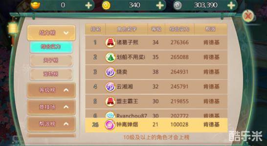 1、玩家等级达到10级时开放排行榜,只排等级大于等于10级的玩家、宠物和天子。