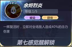 一辉复活时,立即对全场敌人造成40%(45%/50%/55%/60%)的念力伤害