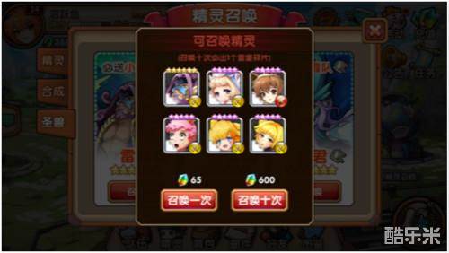 点击召唤显示有65精灵石1次或600精灵石10次,其中10次必出所选择相应的圣兽碎片,看来其余的五星精灵也都是碎片。其中的10连抽,是最有几率获得多个圣兽碎片的选择。同时,也必出对应队伍里的紫5星精灵碎片和其他5星精灵碎片。所以小编建议,如果有足够的精灵石,尝试一下还是可行的。