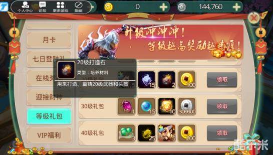 8.等级礼包:玩家达到10级、20级、30级、40级、50级、60级、70级、80级时,分别可以领取1次等级礼包。