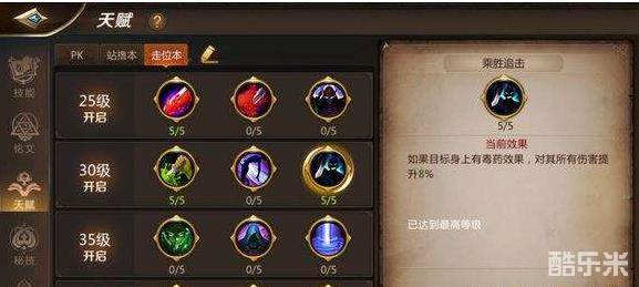 第二层天赋推荐选择加满诡秘和乘胜追击。刺客是一个十分依赖暴击且暴击较高的职业,搭配诡秘可以大大减少技能的CD,这样在战斗中相同的时间内可以比其他队友多打出一套技能的伤害,DPS自然而然就上去了。乘胜追击也是十分贴合刺客的天赋,乘胜追击等于稳定提示刺客8%的输出,非常实用。