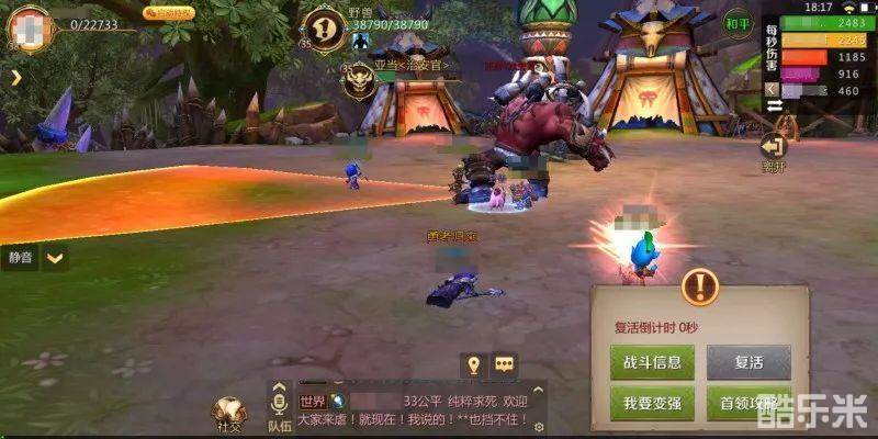 他还有一个无差别百分比掉血技能-原始怒吼,对所有人造成生命值40%的伤害(精英难度为50%),这时候治疗职业需要及时加血,使大家血量稳定在健康血线。