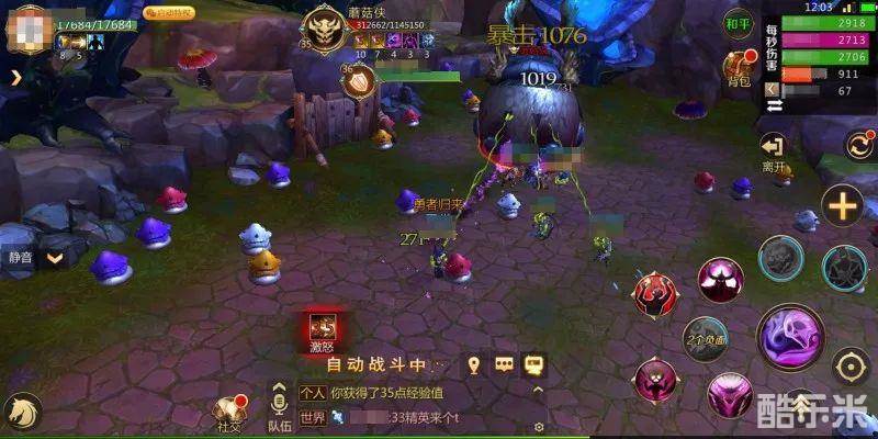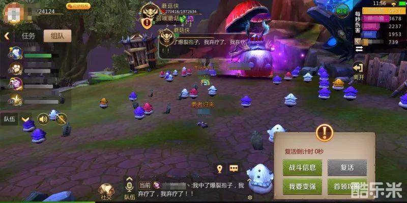 精英级别的蘑菇侠还有一个,爆裂孢子技能。这是一个非常恐怖的伤害技能,相信不少冒险家都殒命于此。蘑菇侠随机点名一个玩家,10秒后该玩家对其他所有玩家造成相当于当前生命值的伤害。被点名的玩家需要迅速踩黑(蓝)蘑菇,降低自身生命值至一万左右。点名期间,治疗这也只需紧跟被点名的玩家,等到爆裂孢子技能结束后再进行补血,避免奶死团队的情况。另外,蘑菇的效果是会被替换的,当地上蘑菇较多时可先将其他蘑菇吃掉,最后再吃自身职业的蘑菇,避免走位时因蘑菇过多踩错蘑菇导致团灭。
