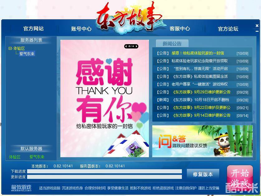 第一步:启动《东方故事》游戏更新界面,点击“开始游戏”;