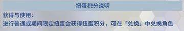 在兑换界面里,会有各一金一紫的两名角色。想要获得他们的方式就是拿积分兑换。规则里面也说明了积分的获取方式。普通扭蛋与限定扭蛋的可获的积分分别是10和15.