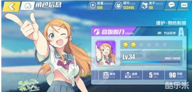 援护型角色高板桐乃在游戏中的技能释放效果就是物防削弱。游戏中的她可以说是一个完美的女生了,不仅外表出众,而且成绩优秀,她的运动方面也是万能的哦,不论什么时候,都是暖人的微笑面对着每一位玩家,每次看见她的微笑都能温暖着人心呢。