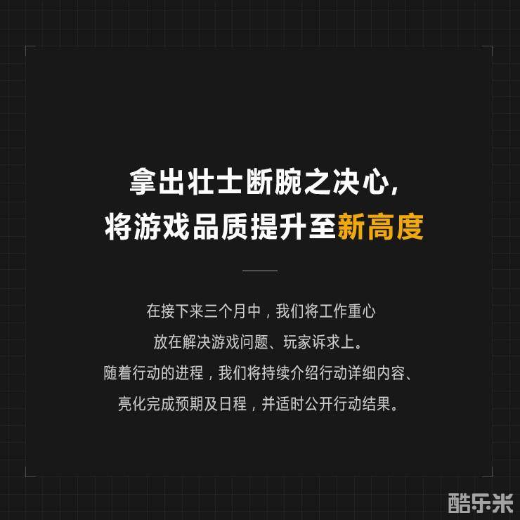 官方表示,这次他们将“拿出壮士断腕之决心,将游戏品质提高至新品质。”