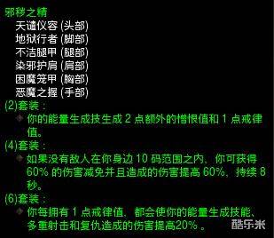 2件套特效:这个很好理解,就是字面意思,回能技能打1下回1戒律,并额外多回2憎恨;