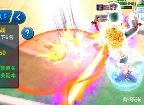 二阶段相对会比较简单,Boss返回场地中央开始释放龟派气功(直线长距离范围,伤害约30000),且不会移动不会普攻,攻击目标为随机目标。所以队伍站位优先靠近Boss,然后分散在每个方向,这样有利于走位躲避龟派气功。当5次龟派气功释放完毕之后,Boss会进入虚弱状态,此时是输出的好机会,一旦虚弱解除后便会进入狂暴状态,所以对于DPS也是有一定的伤害要求的。