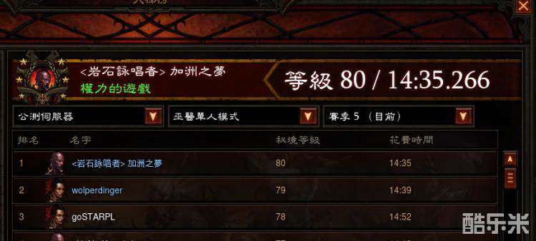 这应该是PTR最后一次冲层了,马上就关服了,这个号一直是自己在练,没有组队打过高层升巅峰和宝石,游戏时间为142小时,在20倍掉率的支持下,达到目前的成绩,正式服估计需要的时间要多很多。希望能给没有机会体验测试服的朋友们提前看一下2.4巫医的狱牙套效果,也能为正式服备装与开荒提供一点小小的帮助。这套配装最大的好处就是 2.3转2.4不准备玩赛季的,直接身上的狱牙套接着就能用。