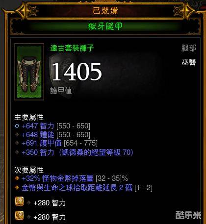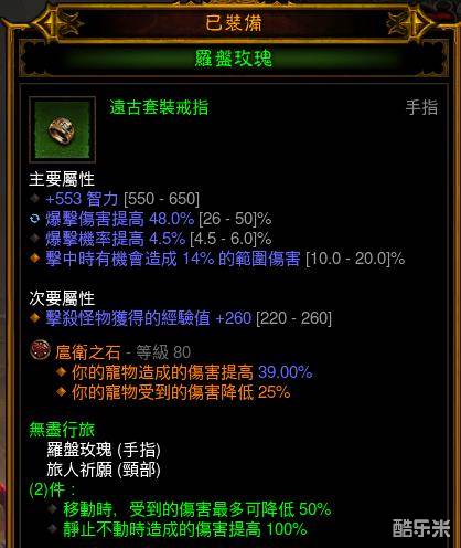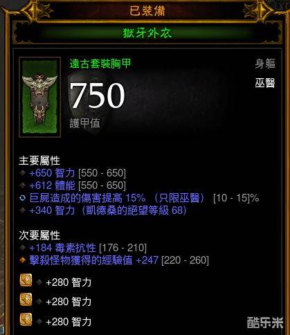 PS:很多人一直质疑为什么要带受罚者,这套根本没有技能去叠加受罚者。我的经验就是,狱牙套很多boss打起来都很吃力,需要赌对boss,比如我80层遇见的蜘蛛女加无敌塔,1分钟10秒左右直接站桩打死,没有受罚者就会慢很多,很可能15分钟内就无法完成大秘境了。