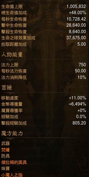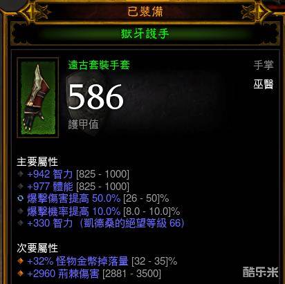 PS:在上述的装备下,手套体力可以替换为范围伤/攻速。武器上的击回可以替换为攻速/范围伤,但是一定要在护腕或者戒指上补回一条击回属性,否则回复能力不够。