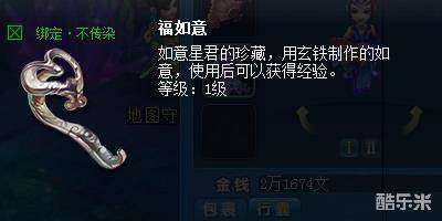 活动开启后,10级以上的玩家在野外练功区战斗打怪时,有一定几率获得活动道具,随机获得福如意、银如意、金如意、玉如意等物品。