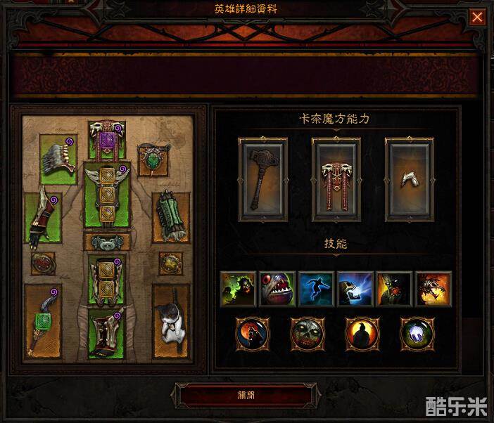 狱牙6件,巨魔人之指,小魔人之指,收割刀收割护腕,猫,地狱火项链,巫异时刻。