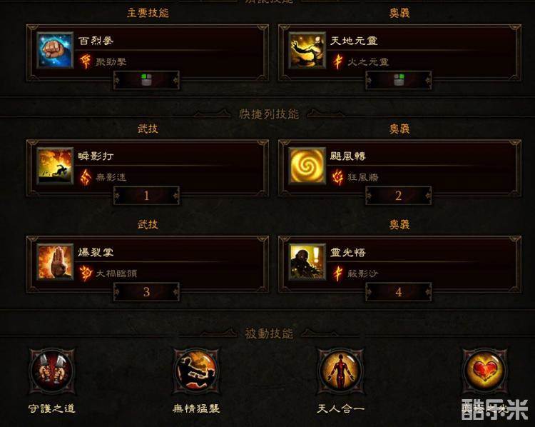 输出手法:全程锁定黑人技能,飓风转点怪进怪堆--打拳出buff,一层5%伤害我一般有个五六层就开始下一步了,当然还可以憋一憋--百裂的buff5秒内,爆裂掌跟飓风转轮番按,不停的给周围上爆裂,两三个爆裂之后点小弟,小弟能控伤害也不低关键能血蓝全满,当然很多时候一轮是干不掉怪的,疾风击换个位置重复以上。