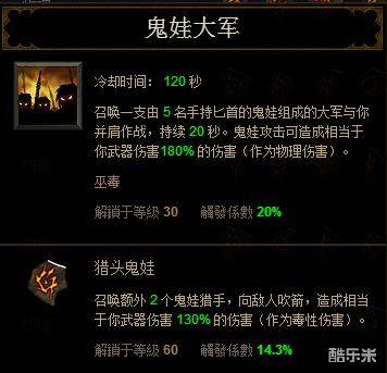 2.2.2、B类增伤吹箭鬼娃的B类增伤主要有两种:毒性技能造成的伤害提高%,宠物造成的伤害提高%,如护腕上的毒伤加成,宠物头特效,侍宠宝石特效等,以上两种增伤类型也是加法关系,会有收益递减效应。顺便提一点,有不少巫医新手对鬼娃的属性伤有疑问,为什么只是毒性技能伤有加成?特别是到了2.4,回蓝吹箭明明是物理伤,怎么到了鬼娃吹箭还是毒伤?要解答上述疑问,得先搞懂鬼娃吹箭是属于什么技能。