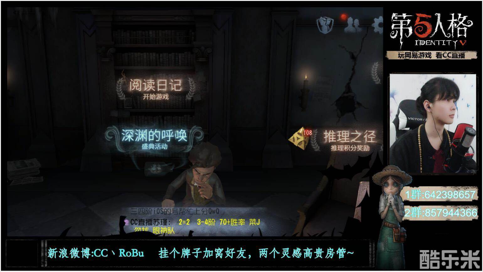 ROBU:在内测的时候就已经开始接触《第五人格》了,我个人比较喜欢这一类游戏,而CC直播作为官方的直播平台,在专业程度和主播水准上,我认为CC直播相对会更胜一筹,除此之外,我很享受CC那种融洽的氛围,主播和粉丝之间都十分和谐,这也是CC直播吸引我的地方。