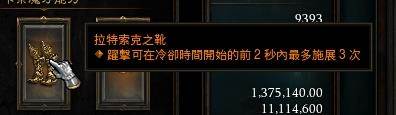 打法:利用跳跳鞋特效,通过三次跃击(跳斩),同时配合战斗暴怒触发裂地之震及山崩地裂,达到攒怒气及聚怪的效果。三次过后,对怪堆使用上古之矛,造成巨额伤害并刷新跃击。如此循环