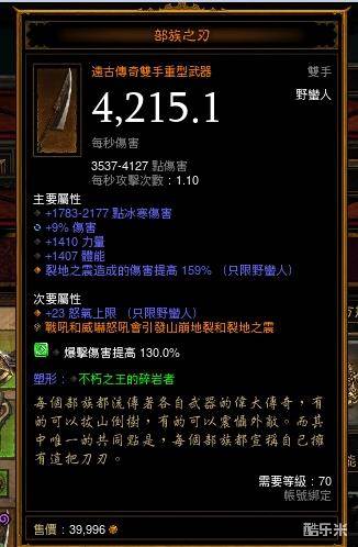 装备以新版地震套为核心,戒指使用老对戒,配合新武器部族之刃 护腕司库勒的救赎和腰带畏怖铁块(什么奇奇怪怪的名字),项链选择一般为地狱火。