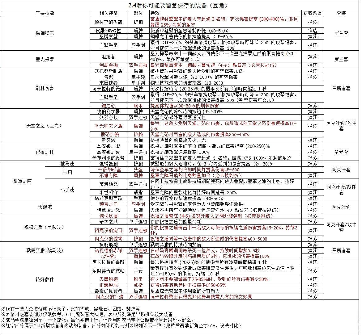 闲来无聊整理了点圣教军2.4出场率较高的装备。希望能帮助将要选择圣教军出征2.4的朋友,或者为有机会玩到ptr的新手圣教军。