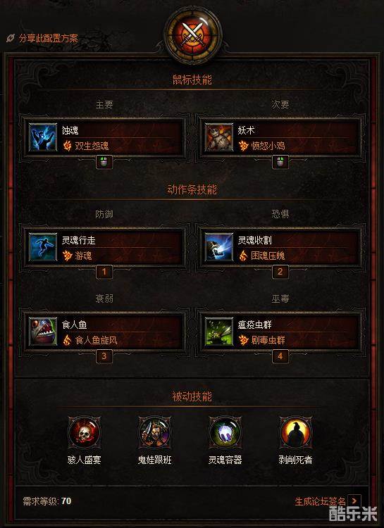 技能描述:灵行、蚀魂-双生怨魂、妖术炸鸡、虫群-剧毒虫群、护甲收割、聚怪食人鱼