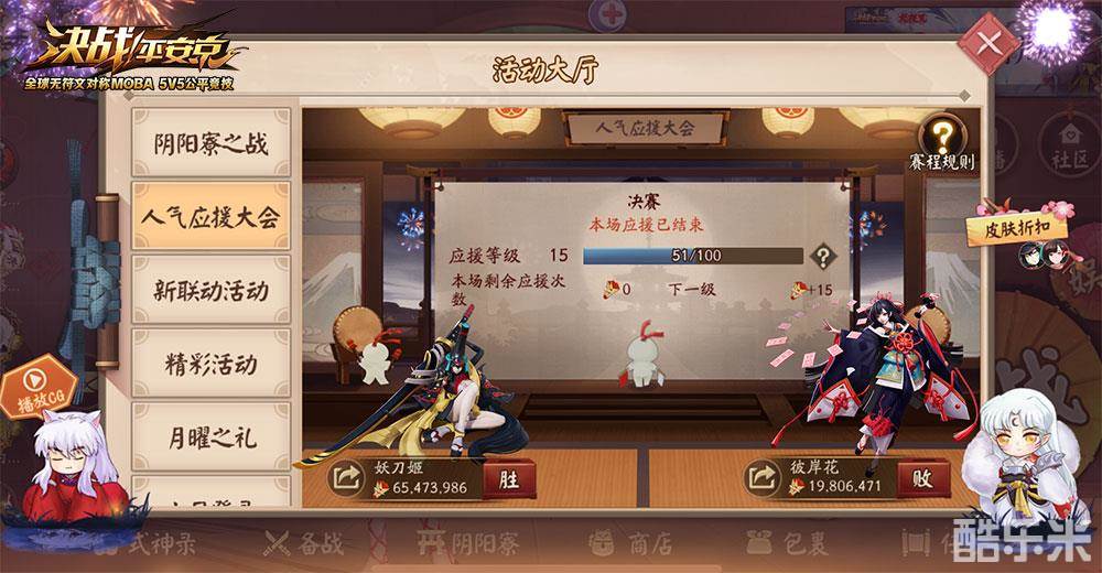 为崽应援,华丽落幕!《决战!平安京》人气应援大会总决赛顺利结束,妖刀姬一骑绝尘勇夺冠军,专属头像框、全新皮肤都将陆续到来。
