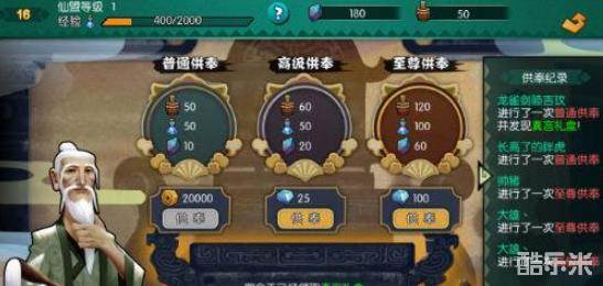 仙盟供奉是玩家们每天都要来的地方,通过消耗金币或者是钻石来进行供奉。大家可以根据自己的财力来进行相对应的选择。每天在三种供奉中必有一种供奉可以触发先祖考验,完成先祖考验答题可获得真言。