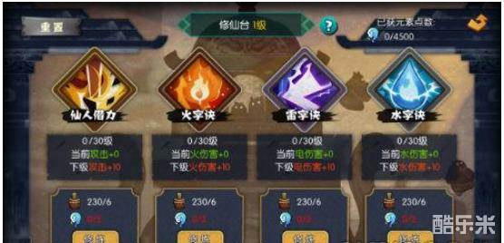 修炼台是玩家们提升属性地方,里面有各种属性可以供大家进行提升。修炼属性是需要消耗供奉点以及元素点数的,元素点数可以通过试炼之地来获得。