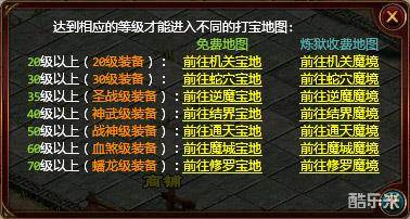 打宝圣地需要根据不同等级进入不同的圣地地图。等级越高,爆率越好!