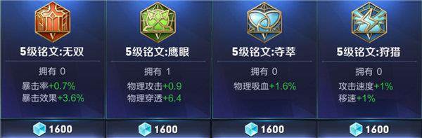 黄忠是一个对暴击需求很高的英雄,结合被动的效果能让黄忠的输出最大化,所以铭文推荐拥有暴击率与暴击效果加成的无双铭文;在提高了暴击的同时,物理伤害也是身为射手的黄忠一个必备因素,鹰眼铭文的物理攻击与物理穿透让前期的黄忠无论面对敌方肉盾以及输出,都拥有不俗的伤害;为了保证黄忠前期的续航能力,建议选择拥有吸血效果的夺萃铭文,而作为没有位移技能的黄忠来讲,移速则尤为重要,狩猎铭文在提供移速的同时还增加了攻击速度,提供黄忠的出手速度,造成的伤害将更为恐怖。