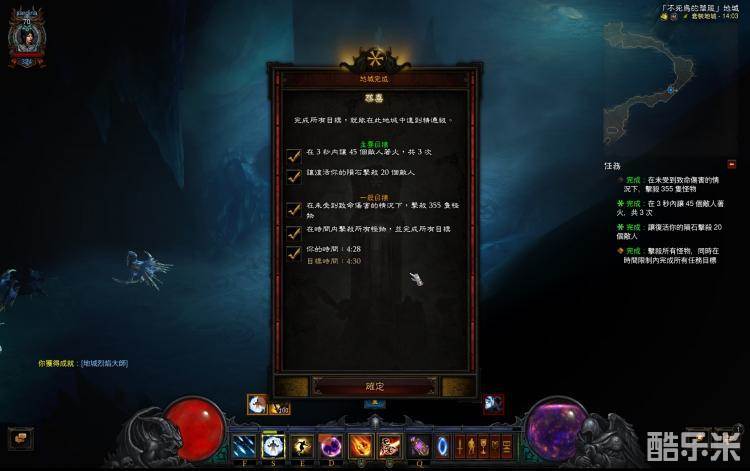 限时内任意达成一项主要目标并且不死,杀够一定数量怪物就可以通关,可以达成赛季第四章的任务要求。