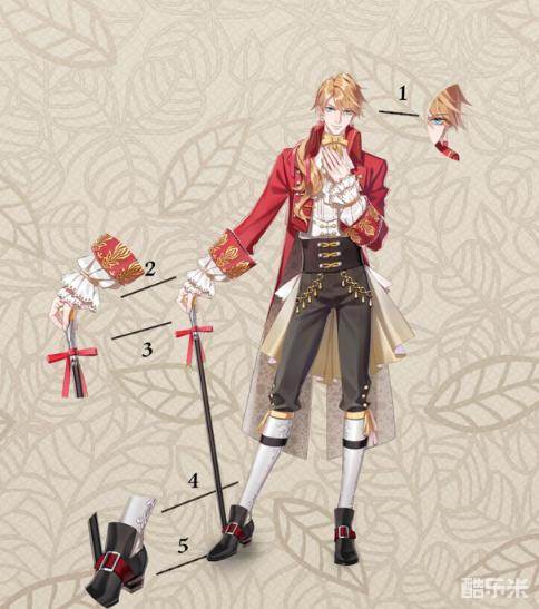 2.蕾丝花边。18世纪洛可可风格使得男性服饰也大量采用花边装饰。红色外套,凸显红茶茶基特征。